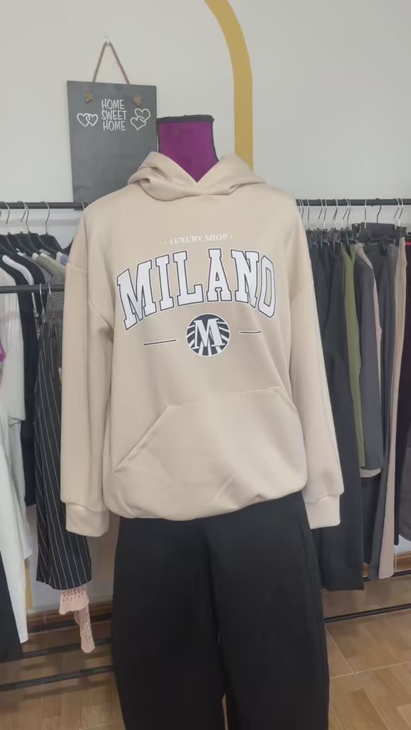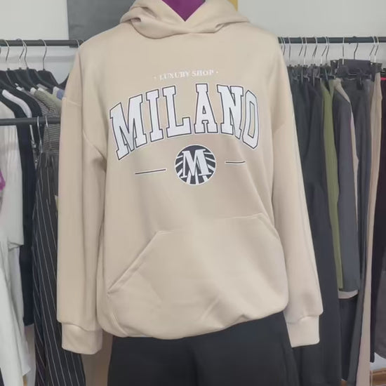 La sudadera Milano es la prenda ideal para la temporada de otoño. Con su diseño en talla única y variedad de colores (marrón, beige y negro), te mantendrá abrigado/a y a la moda. ¡Hazte con la tuya ahora y prepárate para el otoño!